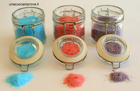 Ogni volta che entro in una di quelle belle pasticcerie con gli scaffali pieni di oggettini dolci, come ad esempio cucchiaini di cioccolato fondente, zollette di zucchero decorate per ogni occasione, pirottini di cioccolato per servire un liquorino o da riempire con una crema, mi ritrovo a naso in su a pensare, come utilizzarli o meglio a come riprodurli a casa. Così ho provato a colorare lo zucchero, semplicissimo basta solo un po’ di pazienza.