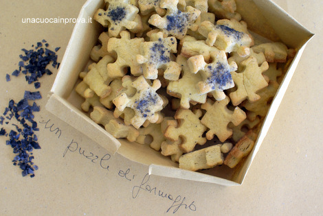 Ho usato un taglia biscotti con la forma di un pezzettino di puzzle, ma vi posso assicurare che andranno a ruba anche se li taglierete semplicemente a quadretti. Provate e fatemi sapere.