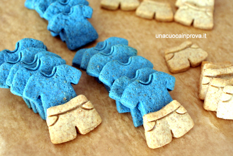 Stendete i due impasti con il mattarello e date forma ai vostri salatini io usando questi stampini ho ottenuto 25 maglie e 25 calzoncini.