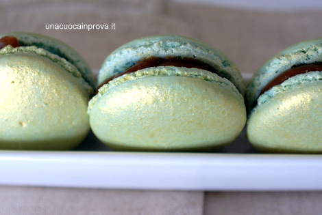 Macarons dorati al puffo caramello o