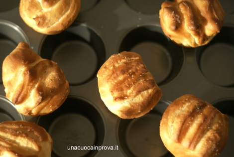 Metteteli negli stampi per muffins aprendoli un po’ a ventaglio.