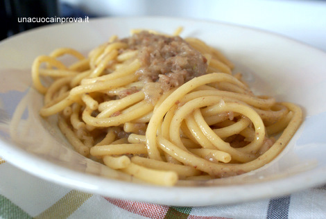Tags: acciughe > bigoi in salsa > bigoli in salsa > bucatini > cipolla > spaghetti