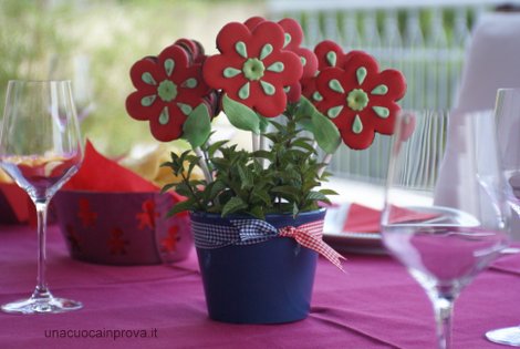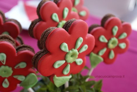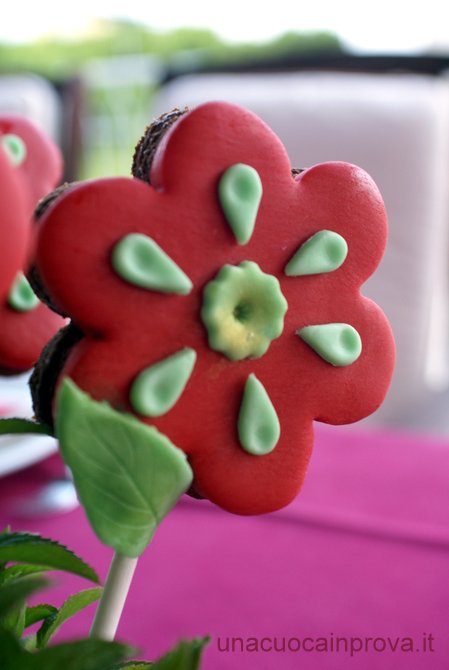 qualche sera fa avevamo invitato da noi per una pizza degli amici con i loro bambini e volevo preparare almeno un dolcetto che potesse essere simpatico e semplice, così oltre ad una crostata di frutta mi sono divertita a fare questi biscottoni a forma di fiore. Ho utilizzato farina integrale e cacao, li ho decorati velocemente con della glassa fondente colorata e del cioccolato plastico e poi li ho usati come centrotavola…. ai bambini sono piaciuti e a voi?