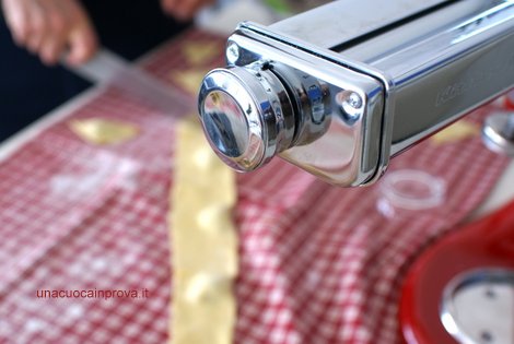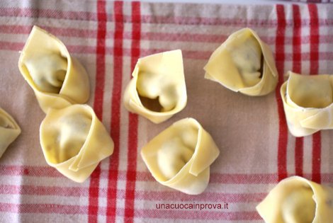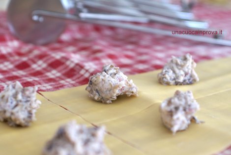 …piccola parentesi (ho provato a tagliarli col coltello dopo averli ben sigillati ed ma con la bicicletta, si ottengono quadrati perfetti e poi è molto più divertente chiuderli uno ad uno tra le dita, ma una volta nel piatto la differenza non l’ha notata nessuno).. chiusa parentesi.