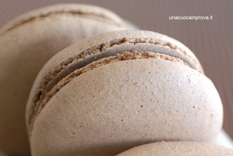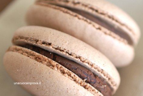 Ora preparate la ganache al cioccolato: spezzettate cioccolato e versatelo in una terrina a parte scaldate la panna liquida con lo zucchero poi versata sul cioccolato mescolate lentamente fino ad ottenere un composto uniforme, unite anche un cucchiaino abbondante di caffè solubile sciolto in un cucchiaio di acqua calda e per completare unite il burro a pezzettini, sempre mescolando per lisciare la ganache, quando si sarà raffreddata versatela in una sacca da pasticcere e mettetela in frigorifero almeno per un’ora prima di farcire i macaron.