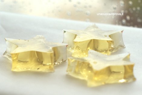 scaldate 500 ml di vino bianco secco (no bollicine), ma non portate a bollore, aggiungete la gelatina (14 grammi) ammorbidita e strizzata e alcune gocce di colorante alimentare giallo, versatela in una teglia formando uno strato di mezzo centimetro di spessore, lasciate raffreddare ed indurire in frigorifero, prima di servire usate uno stampino per biscotti e ritagliate tante stelline e distribuitele attorno al paté.