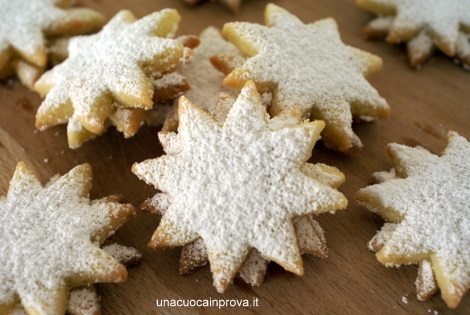 Questi croccanti biscottini li ho scovati in un mio vecchio libretto di cucina, li ho fatti a forma di stella ed essendo sottili-sottili ho pensato bene di “raddoppiare” mettendoli uno sopra l’altro e voilà!